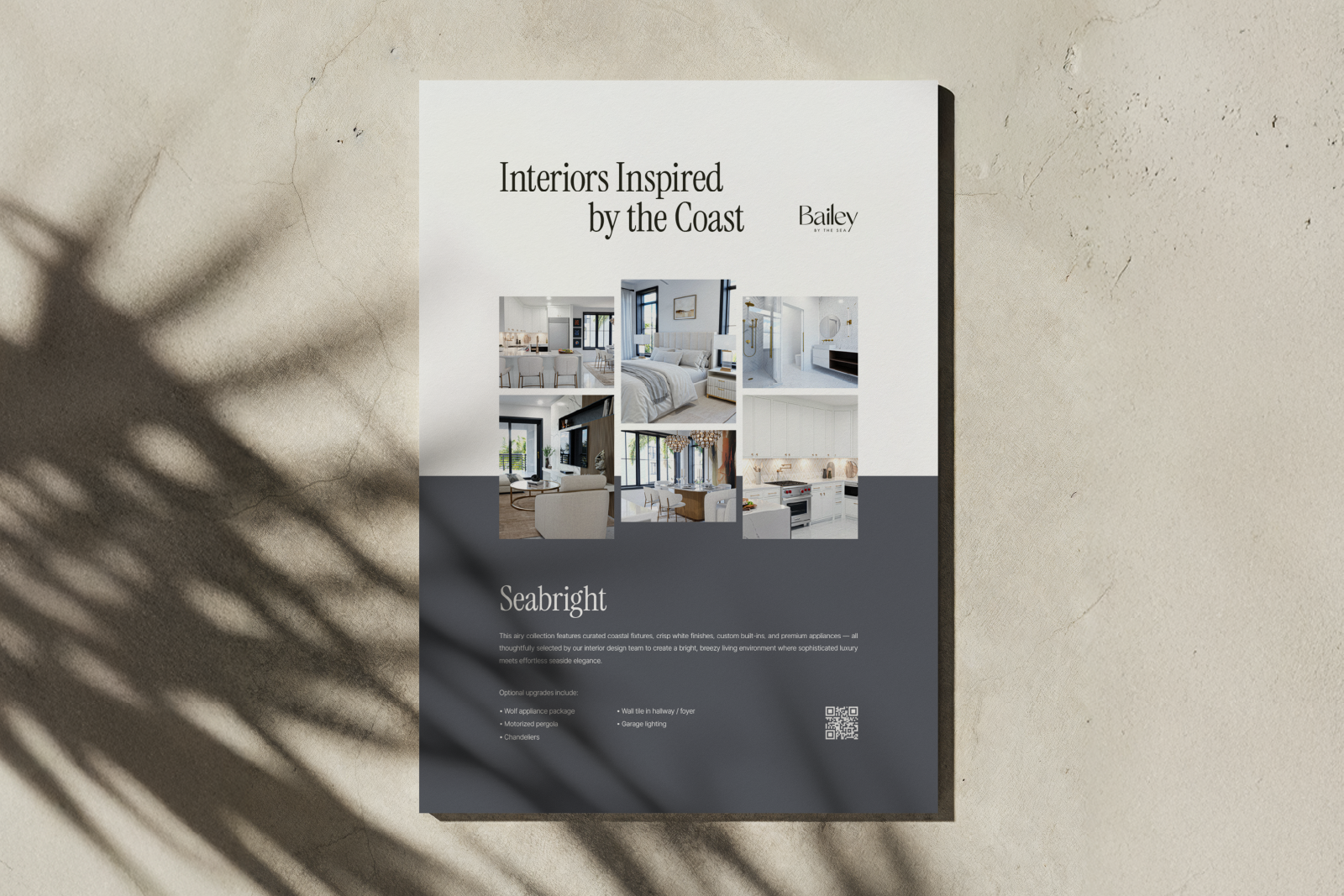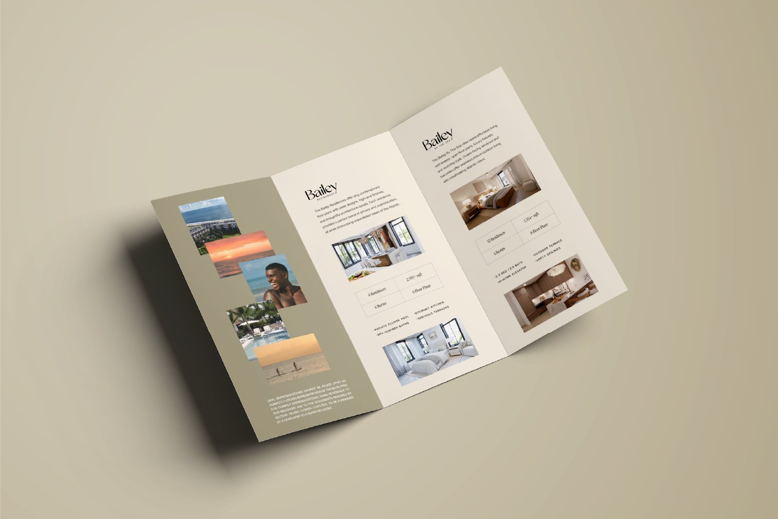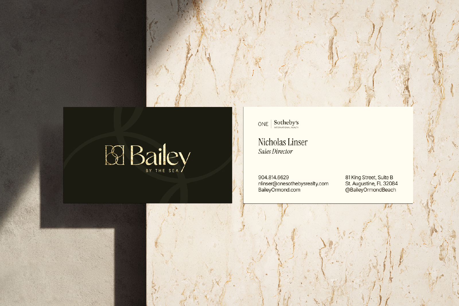 The brand was launched across multiple channels — social media, digital and search-based marketing, targeted email campaigns, and direct sales support for the brokerage — with the beachfront location positioned as the centerpiece of every touchpoint. At the heart of the creative system is a stylized "B" built from grille-inspired line work, designed to carry through both marketing applications and architectural elements such as entry gates. The visual identity leans into warmth, luxury, and coastal comfort, speaking directly to high-end buyers seeking an oceanfront retreat — whether as a primary residence or a getaway. Distribution is primarily digital, spanning social, video, and online platforms, with future plans for targeted audio and video streaming. The guiding idea, "Coastal Living Redefined," does double duty: it signals a new opportunity for upscale oceanfront living while also marking the debut of a new brand as The Bailey Group's first offering — capturing the essence of what these properties stand for, a reimagined vision of tropical, luxury coastal life.